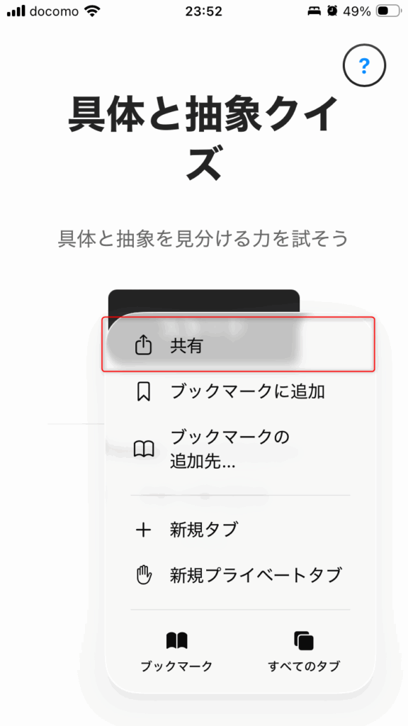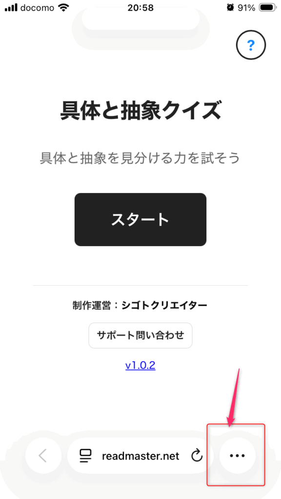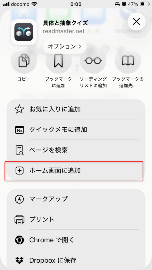 Androidをご利用の方は、以下の手順でホーム画面に「具体と抽象クイズ」をアプリとして追加できます。