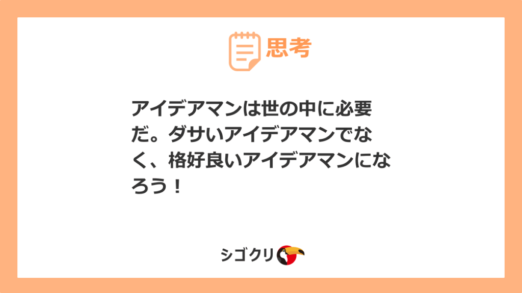 アイデアマンは世の中に必要だ。ダサいアイデアマンでなく、格好良いアイデアマンになろう!