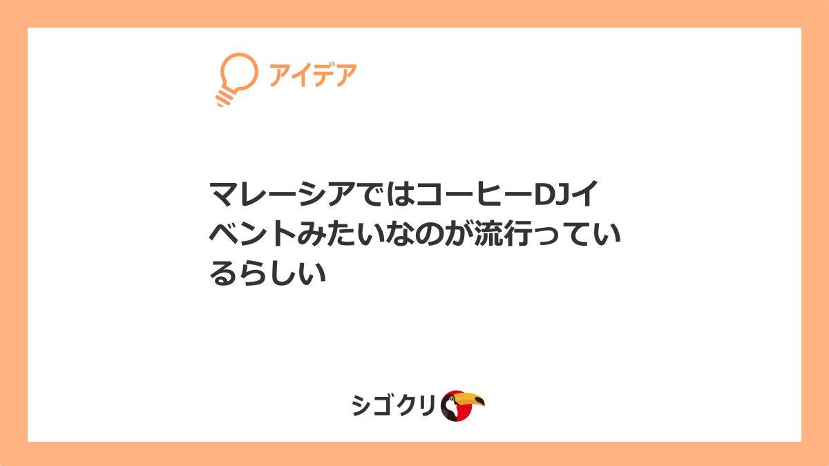 2025年12月10日 / 最終更新日時 : 2025年12月10日 シゴトクリエイター malaysia-coffee-rave-hayatteiru FacebookXBlueskyCopy ビジネスアイデア相談窓口ビジネスアイデアに関する、アイデアや企画、事業、起業についてカジュアルなご相談はお気軽に壁打ち可能です。 詳細はアイデア相談窓口(お仕事依頼)をご参照ください。 大橋に相談してみるFacebookXBlueskyCopy