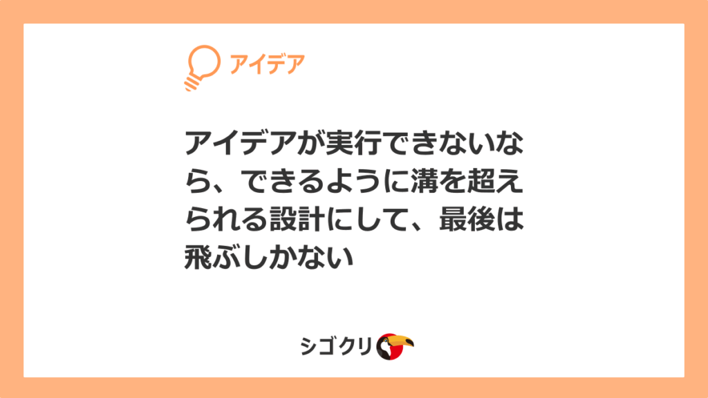 アイデアが実行できないなら、できるように溝を超えられる設計にして、最後は飛ぶしかない