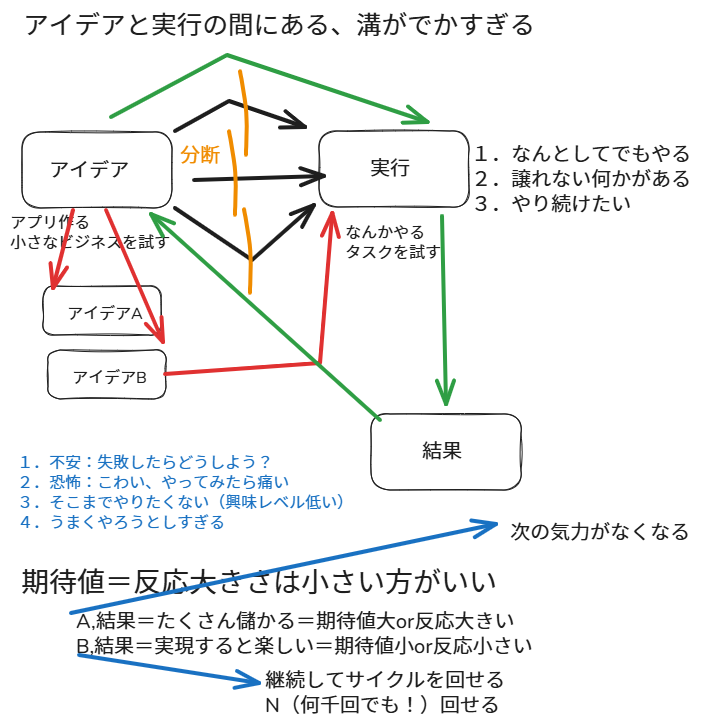 ネタとしては、動画で話しているのは、アイデアってあってもそれやらないよね、なんでだろうね?というところでした。