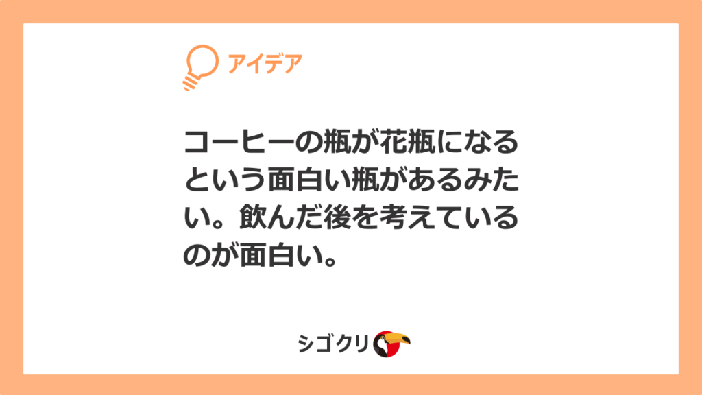 コーヒーの瓶が花瓶になるという面白い瓶があるみたい。飲んだ後を考えているのが面白い。