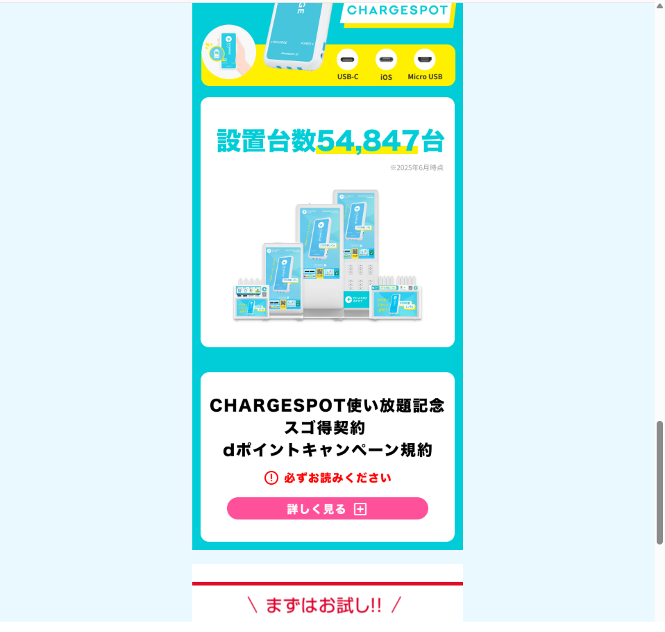 違和感として、モバイルバッテリーサービスは1000円以下ではないはずだから、とても安いなと感じたことだ。だから調べてみると、確かに仕放題ではある。しかし、仕放題ではあるが実質そこまで使う人はいないのだろう。当然実際は異なるから、このキャンペーンで契約したユーザーがめちゃくちゃ充電しまくるケースもある(笑)
