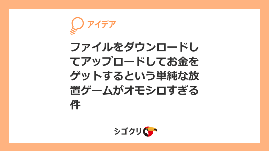 ファイルをダウンロードしてアップロードしてお金をゲットするという単純な放置ゲームがオモシロすぎる件