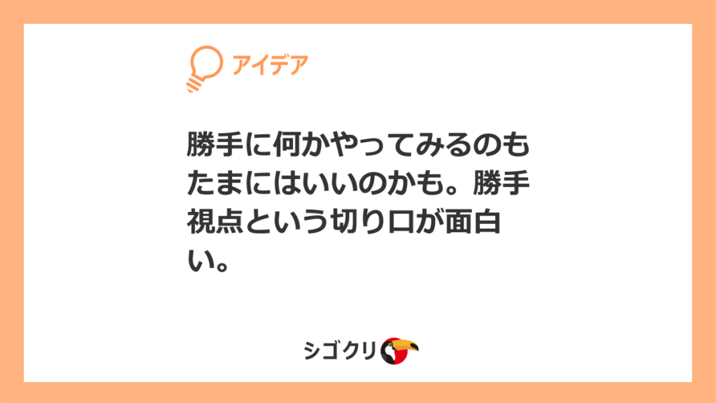 勝手に何かやってみるのもたまにはいいのかも。勝手視点という切り口が面白い。