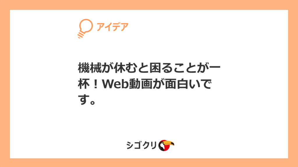 機械が休むと困ることが一杯!Web動画が面白いです。