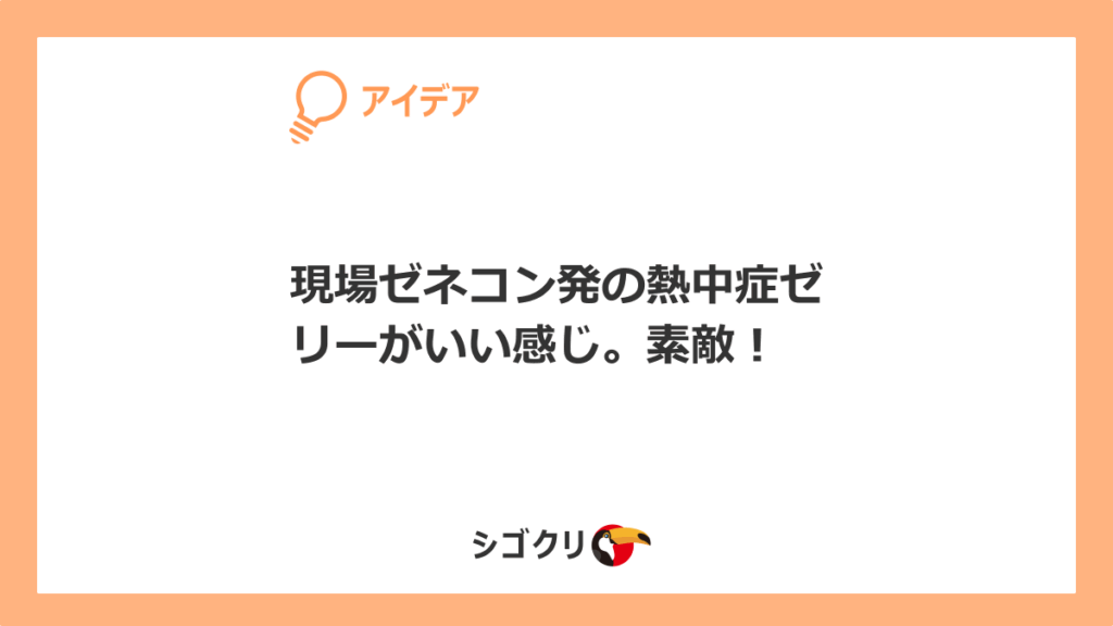 現場ゼネコン発の熱中症ゼリーがいい感じ。素敵!