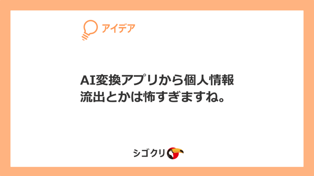 AI変換アプリから個人情報流出とかは怖すぎますね。