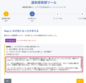 2025年9月18日 / 最終更新日時 : 2025年9月18日 シゴトクリエイター image FacebookXBlueskyCopy 違和感で発想のやり方が学べます日常生活で感じる違和感を用いて、アイデアを出すやり方が学べます。「違和感発想法」は誰でも気軽に出来るサービスです。 詳細はこちらFacebookXBlueskyCopy