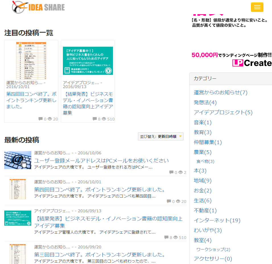 要は、アイデアシェアをサービスサイトとして、他で関連するアイデアサービスサイトを作ってそことリンクさせつつ、かつコンペお知らせもそうですが、弾力的にメリハリをつけていくというところです。出来るかは腕の見せどころですがまた考えていきたいところですね。