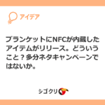 2025年12月9日 / 最終更新日時 : 2025年12月9日 シゴトクリエイター アイデアネタ ブランケットにNFCが内蔵したアイテムがリリース。どういうこと?多分ネタキャンペーンではないか。 「NFC内蔵ブランケット」登場、1カ月無料VPN付きで4万円 今回は商品ネタです。 VPNとブランケットの関連はなさそう 最初見た時、なんで、NFCが内蔵されてって思ったんですね。 でも、元記事も見たんですが、VPNって […]