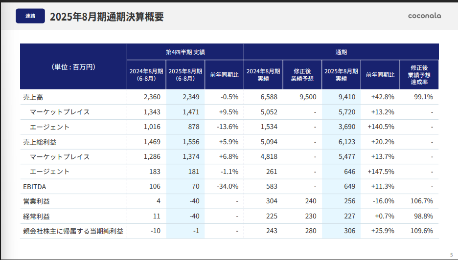 今後ここからエージェント事業が伸びるか伸ばそうとしていて、そちらになると。実質、マーケットプレイス事業をすぐ抜いてしまった場合、ココナラはマーケットプレイスで見せているが、実態はエージェント会社みたいなことになりかねないし、もはやその傾向があるといってもいいかもしれません。だから駄目ではないですし、生存ではそうなっていくのかなと感じますね。