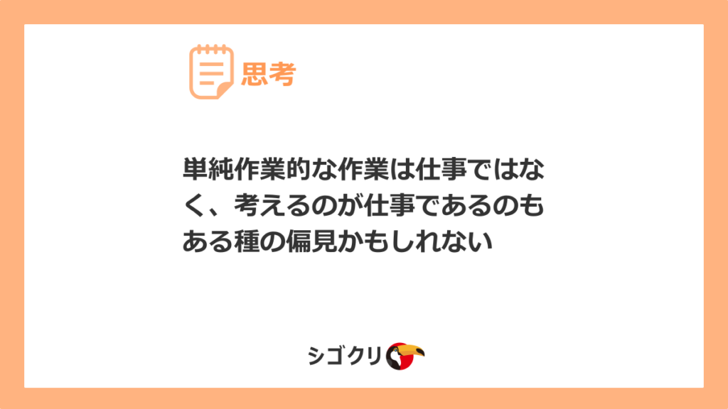 単純作業的な作業は仕事ではなく、考えるのが仕事であるのもある種の偏見かもしれない