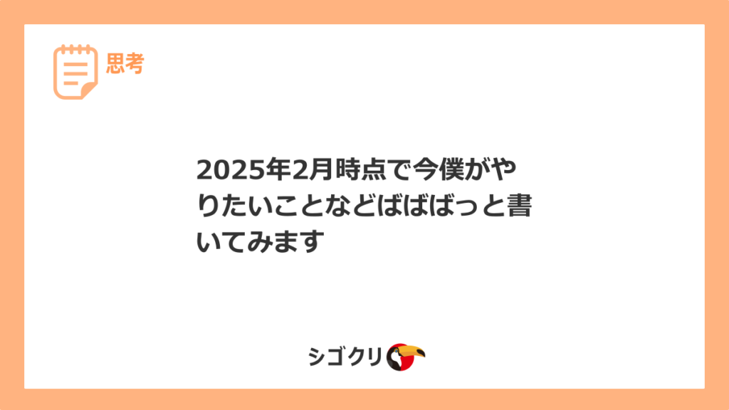 2025年2月時点で今僕がやりたいことなどばばばっと書いてみます