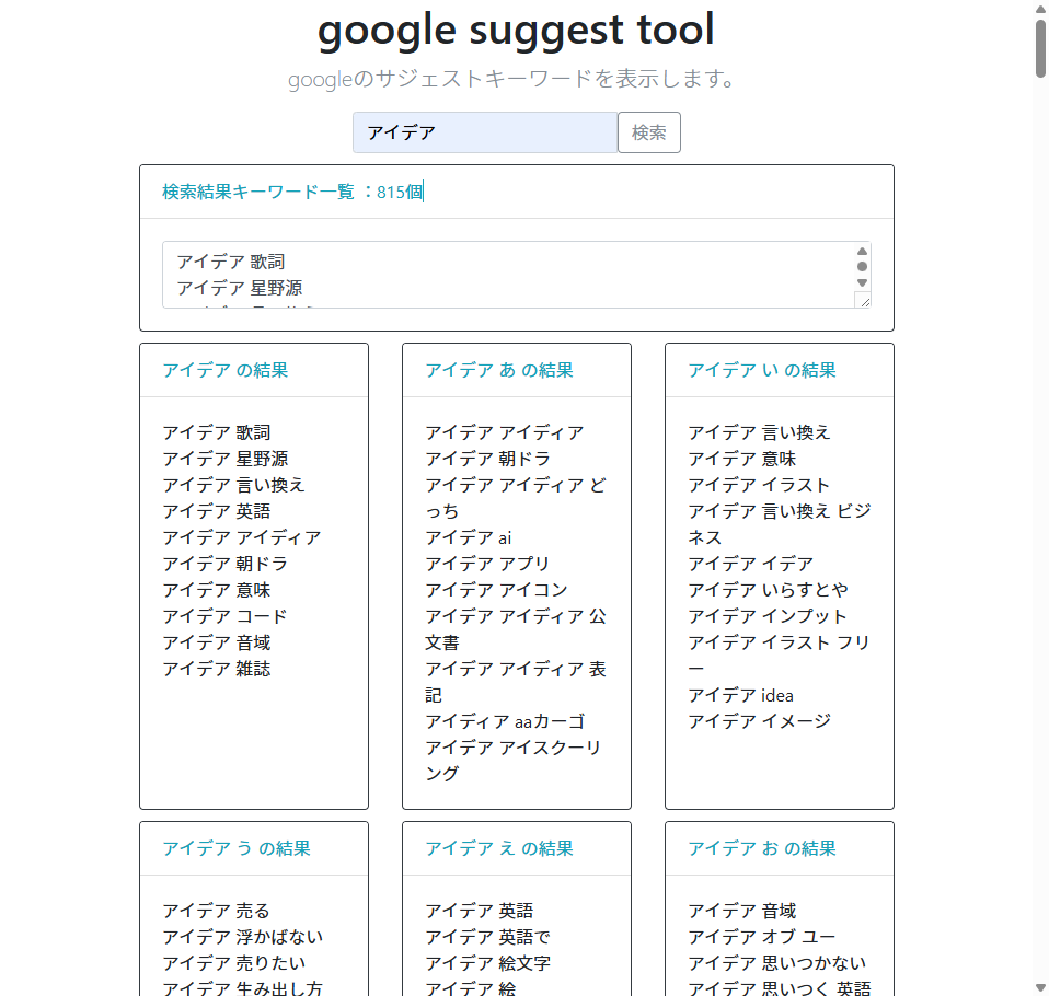 懐かしいです。そしてgoogleサジェストツールもまだ動いていたのは驚きでした・・・。