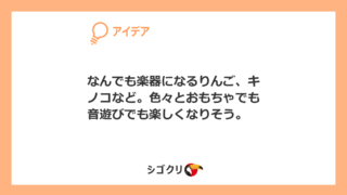 アイデアネタ2025年12月5日なんでも楽器になるりんご、キノコなど。色々とおもちゃでも音遊びでも楽しくなりそう。